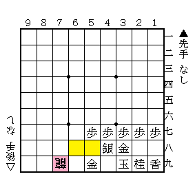 作戦, 将棋 3八金型の戦況判断 2014年10月25日 銀蜘蛛 コメントをどうぞ 相三間飛車等でよく出てくる囲いで、私は良く利用するのですが、飛車が上部ではなく側部から攻められた場合について、考えをまとめました。結論は横からには非常に弱く、片美濃以上に薄いです。黄色の部分に何か駒を打たれたら終わりですから 😯 飛車が側部へ移動してきたら、すかさず2八へ玉が逃げ込んで、更に6一へ底歩か香を打つかしないと持たないです。やっぱ相振りで飛車を捌かれるのは致命的だな~ 😕 VKFacebookTwitterGoogle+PinterestLiveJournal